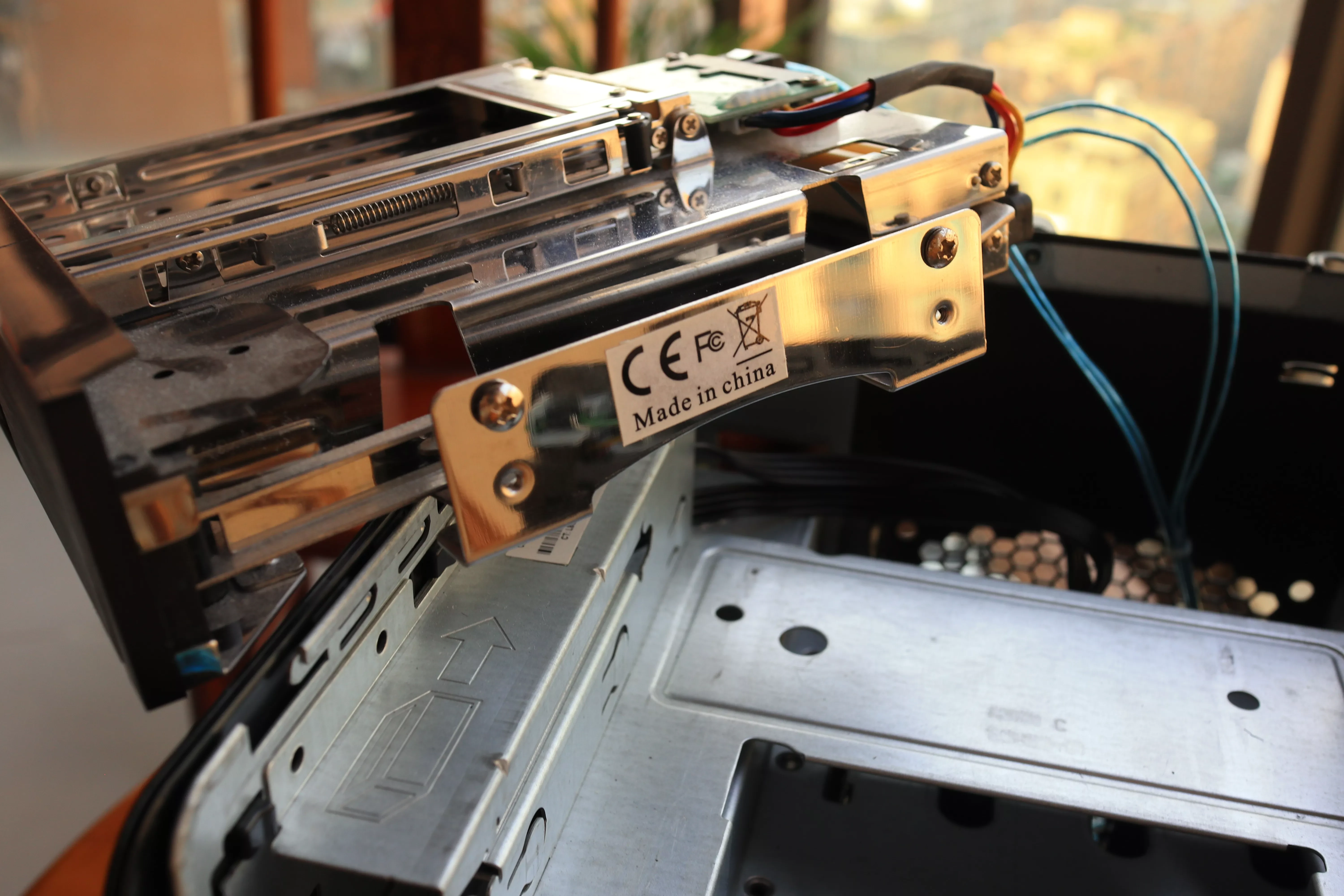 向前直接推动,将整个天灵盖打开来,可以看见光驱的安装位,