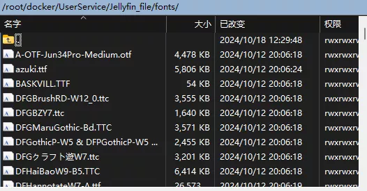 将此文件夹映射到Jellyfin下的系统字体文件夹/usr/share/fonts